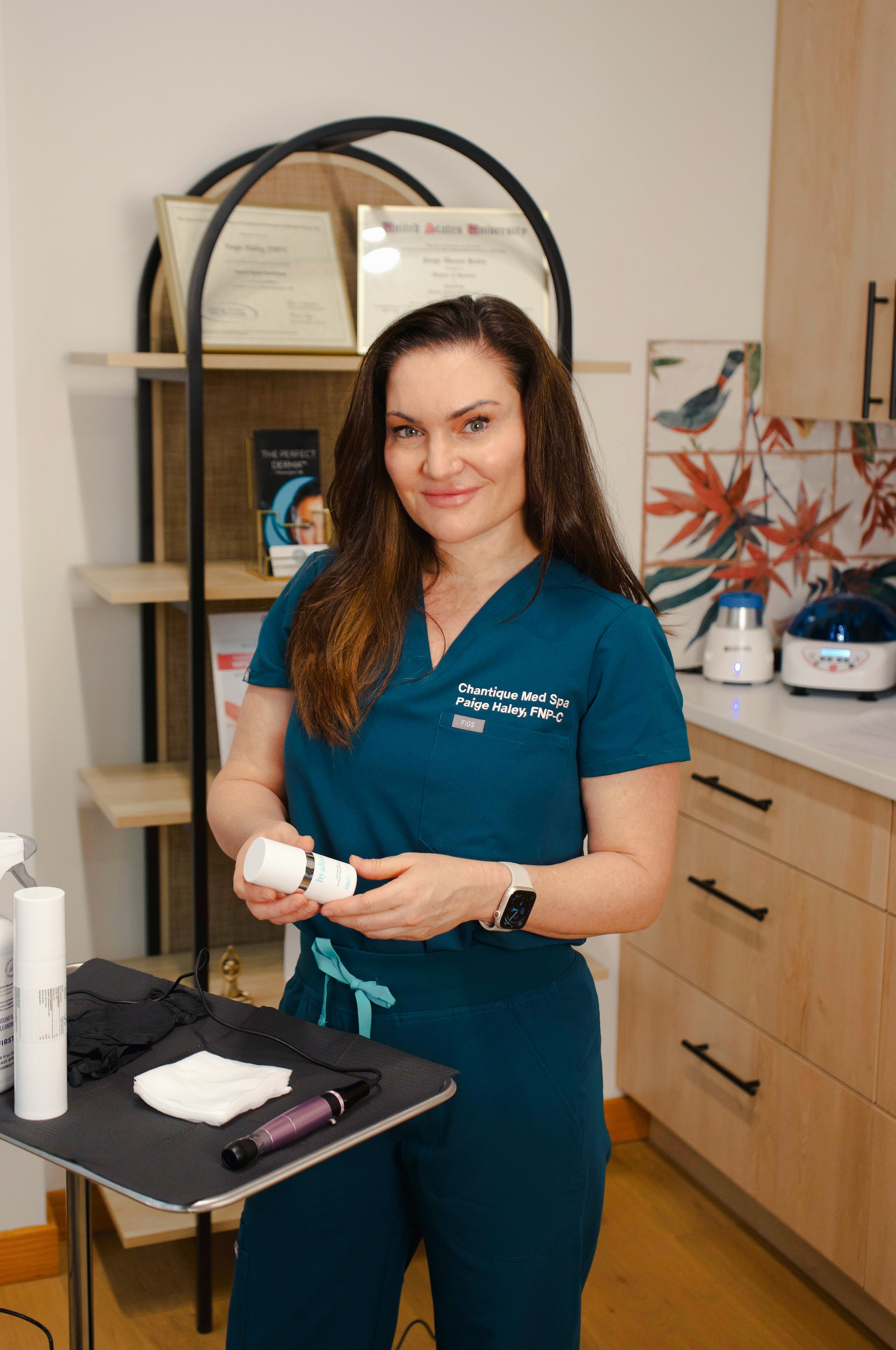 Paige is the heart behind Chantique Med Spa and a highly trained Aesthetic Nurse Practitioner known for her thoughtful, personalized approach to care. With a deep respect for facial anatomy and skin health, she believes aesthetic treatments should enhance—not change—who you are. Paige takes the time to truly listen, educate, and create customized plans that align with each client’s goals, lifestyle, and comfort level. Her calm presence, clinical expertise, and commitment to natural-looking results help clients feel confident, informed, and genuinely cared for from their very first visit.